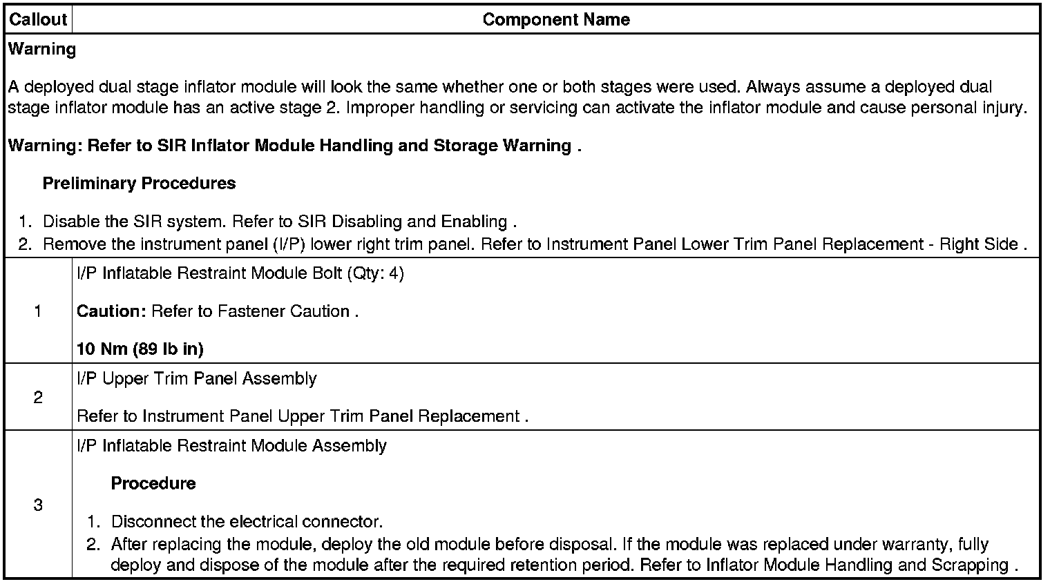 Instrument Panel Inflatable Restraint Module Replacement