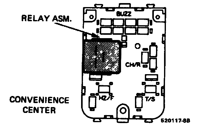 The horn relay is located in the convenience center on the right side of the instrument panel.