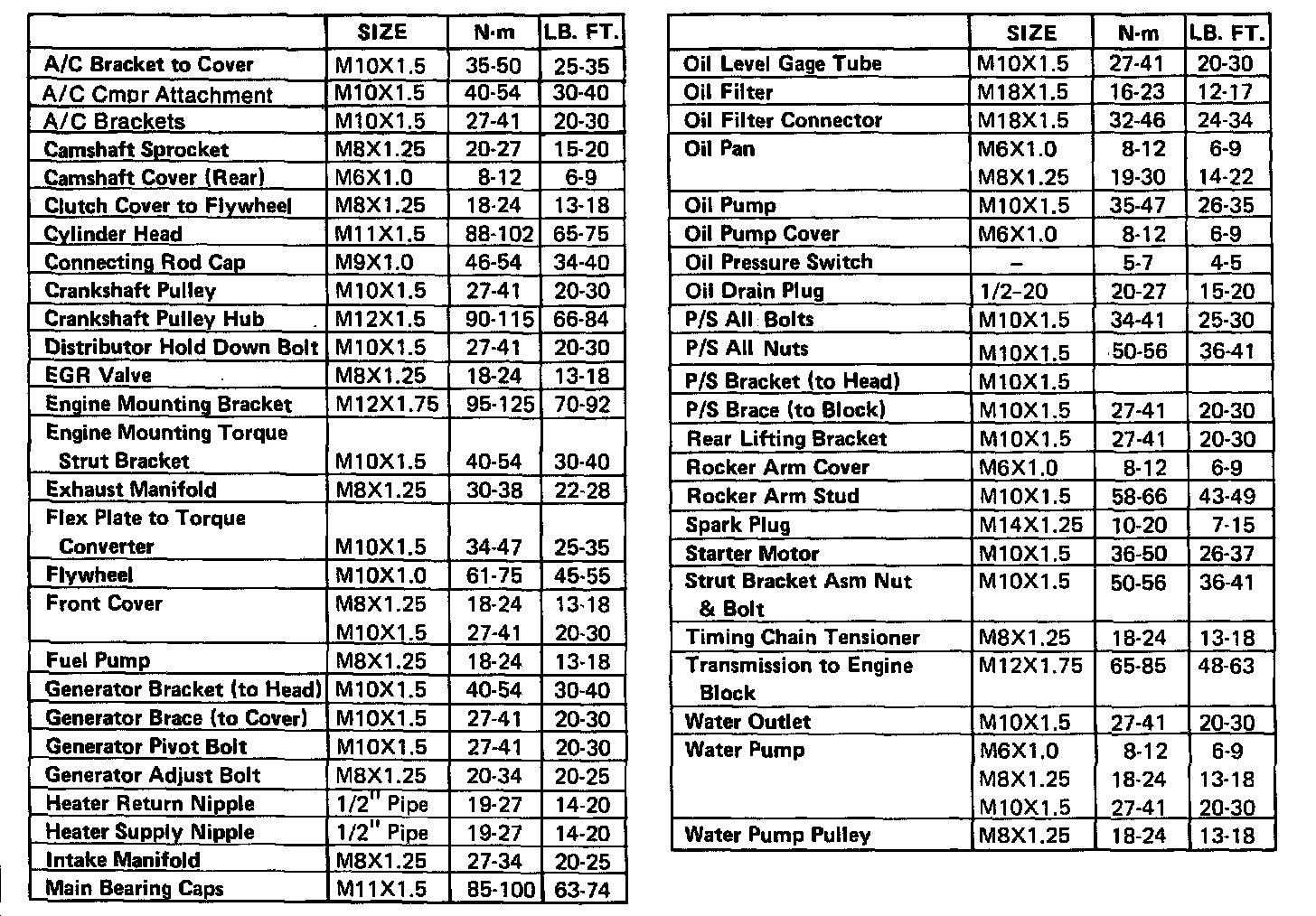 Torque Specifications: