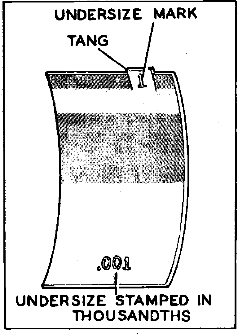 Rod bearings are furnished in standard sizes and undersizes of .001, .002 and .010 inch, Fig. 12.