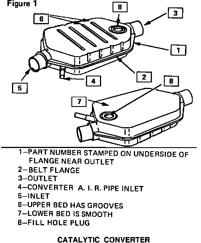 2. Refer to Figure 1 for location of catalytic converter part number.