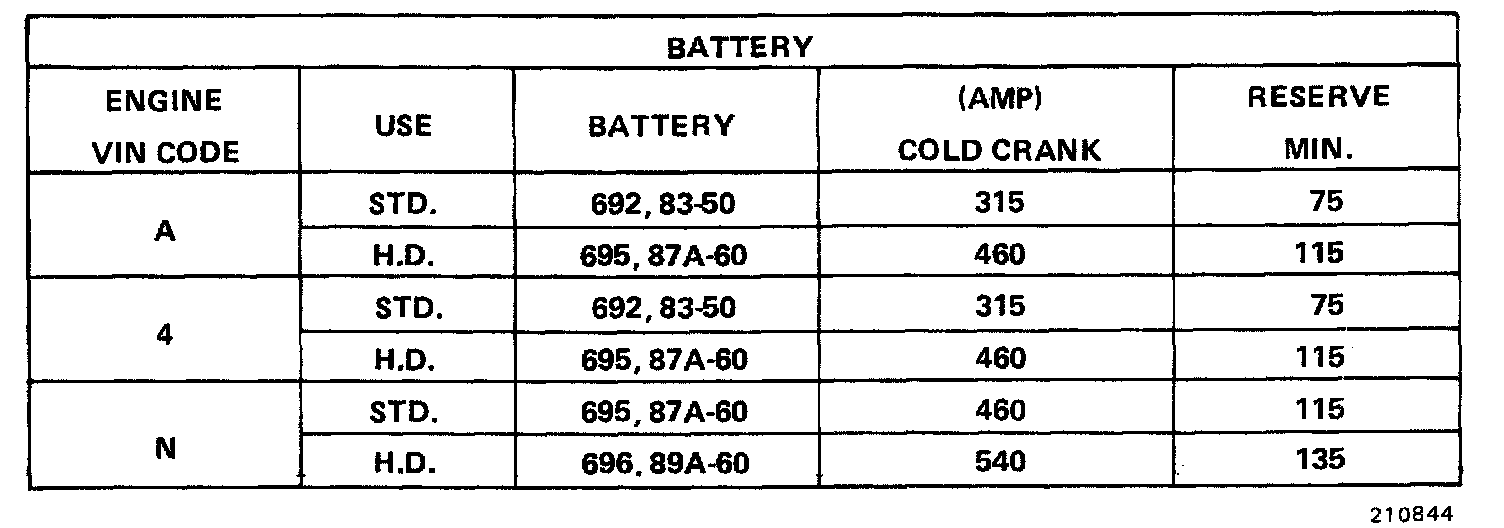 Starting and Charging: Specifications