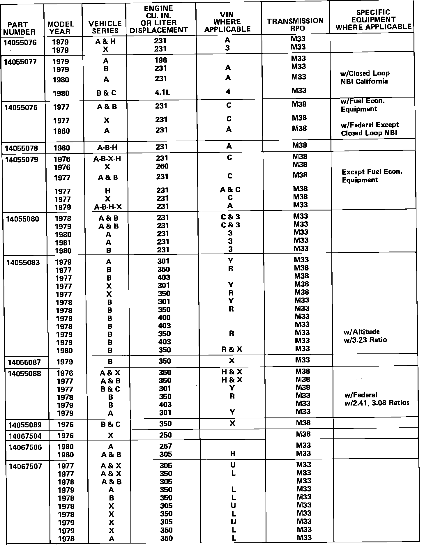 The list (shown on the reverse side) is of remanufactured THM 350 transmissions available from Warehousing and Distribution Division of General Motors (WDDGM). The list provides part number and model application for those units available. For ordering information, see GM Parts and Accessories Bulletin 82-188 dated December 29, 1982.