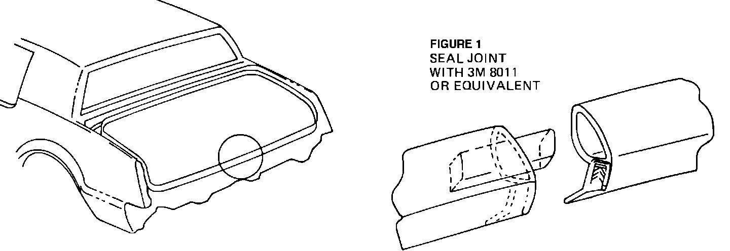 b. Apply a bead of 3M 8011 or equivalent into the new weatherstrip carrier (see Figure 1). Allow to dry until adhesive becomes tacky (approximately five minutes).