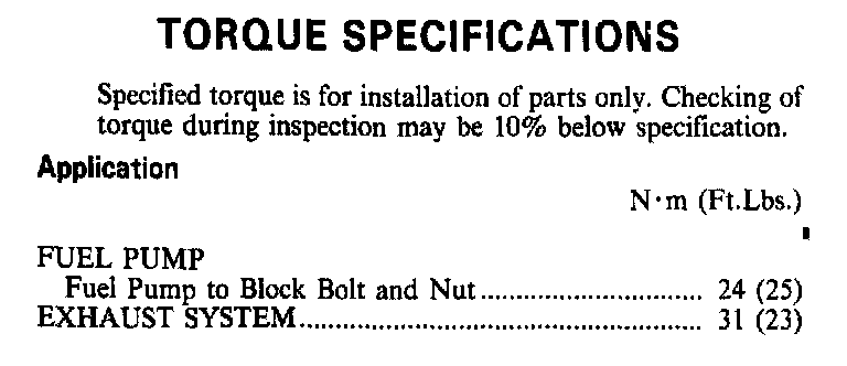 Torque Specifications: