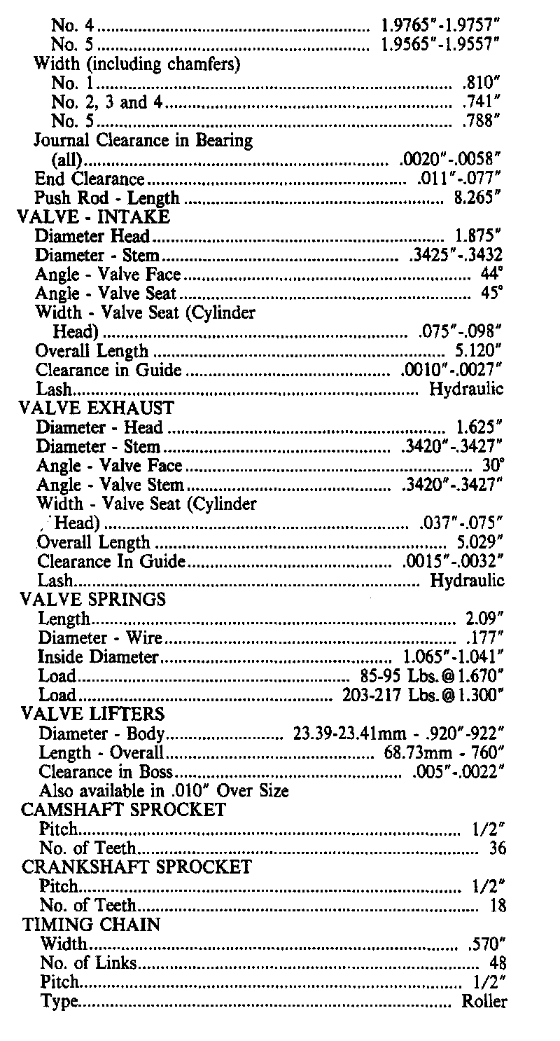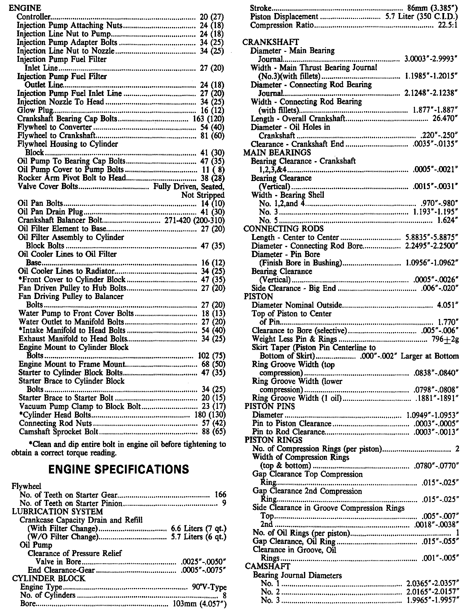 Engine Specifications: