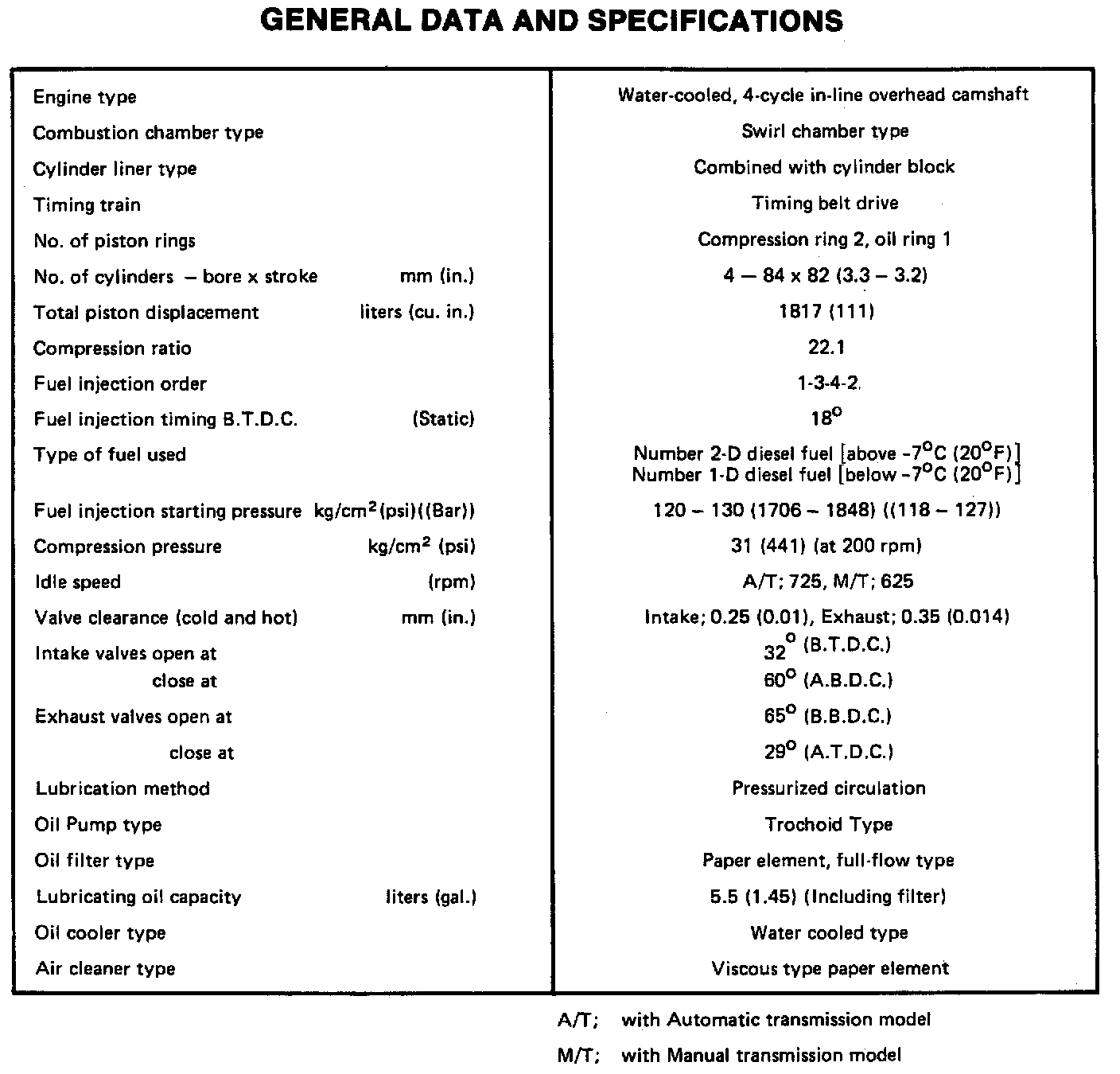 Engine Specifications: