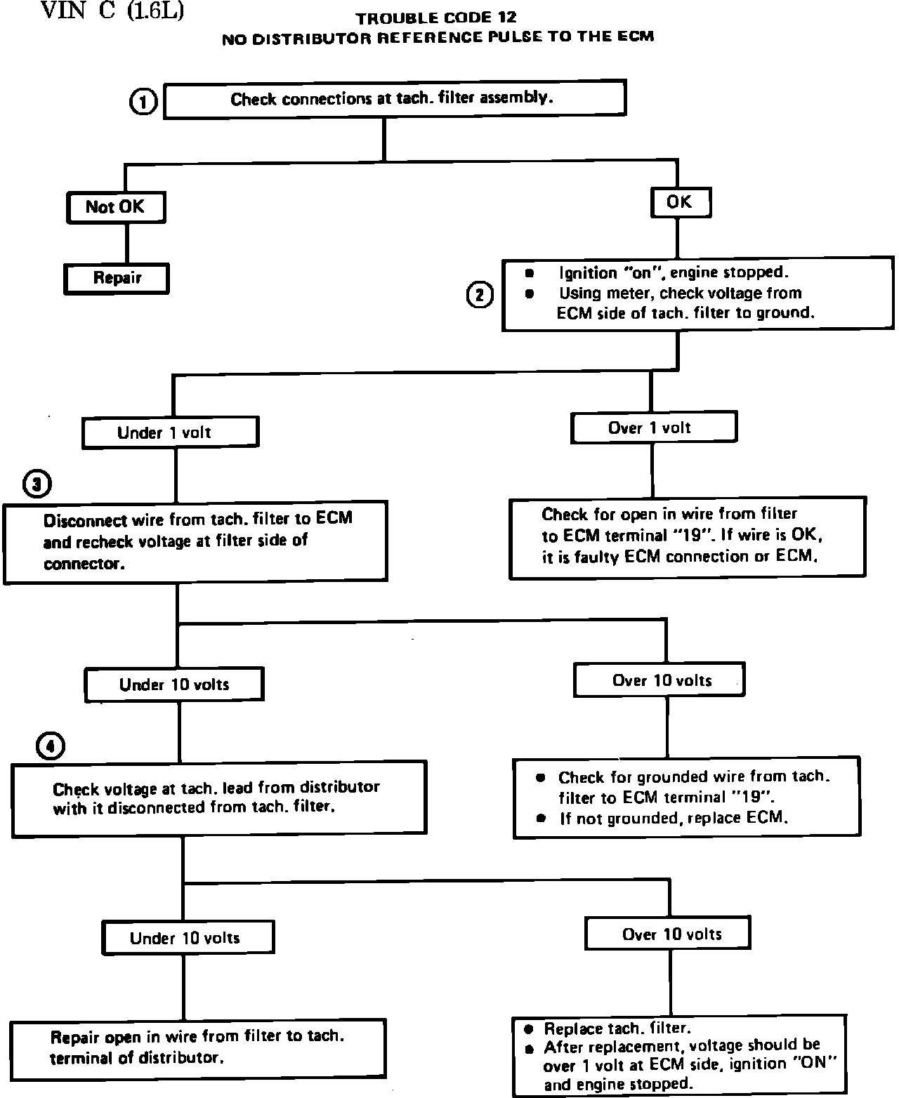 3. This step checks voltage from distributor through the tach filter. Voltage should be above 10 volts.