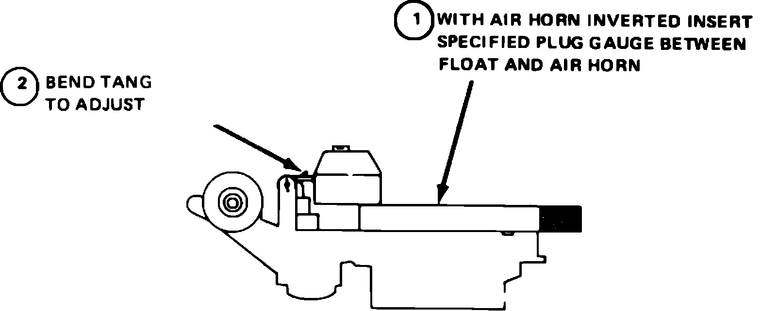 -With air horn inverted, insert specified gauge between float and air horn. Bend tang to adjust.