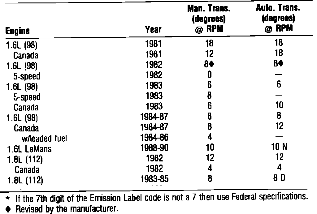 Timing MUST be set to specifications on emission label if different from setting listed. If "Check Engine" light comes on during procedure, remove ECM fuse to clear.