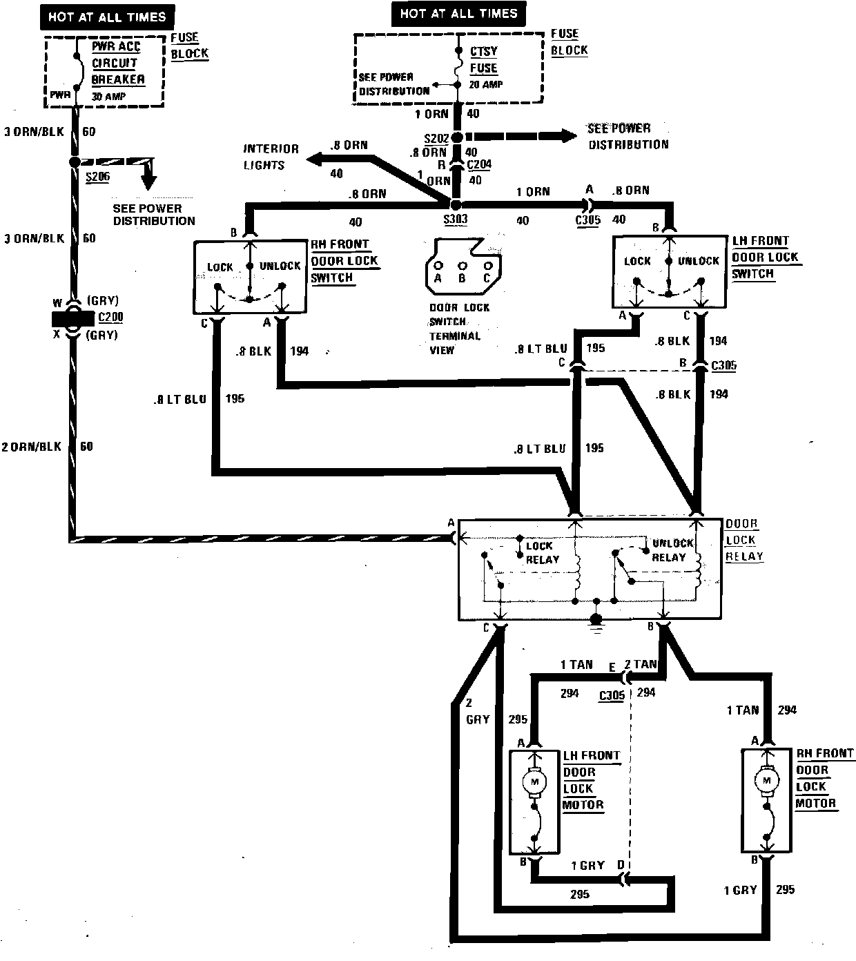 Power Door Locks Wiring Circuit (2 Door) 6000 & 6000LE: