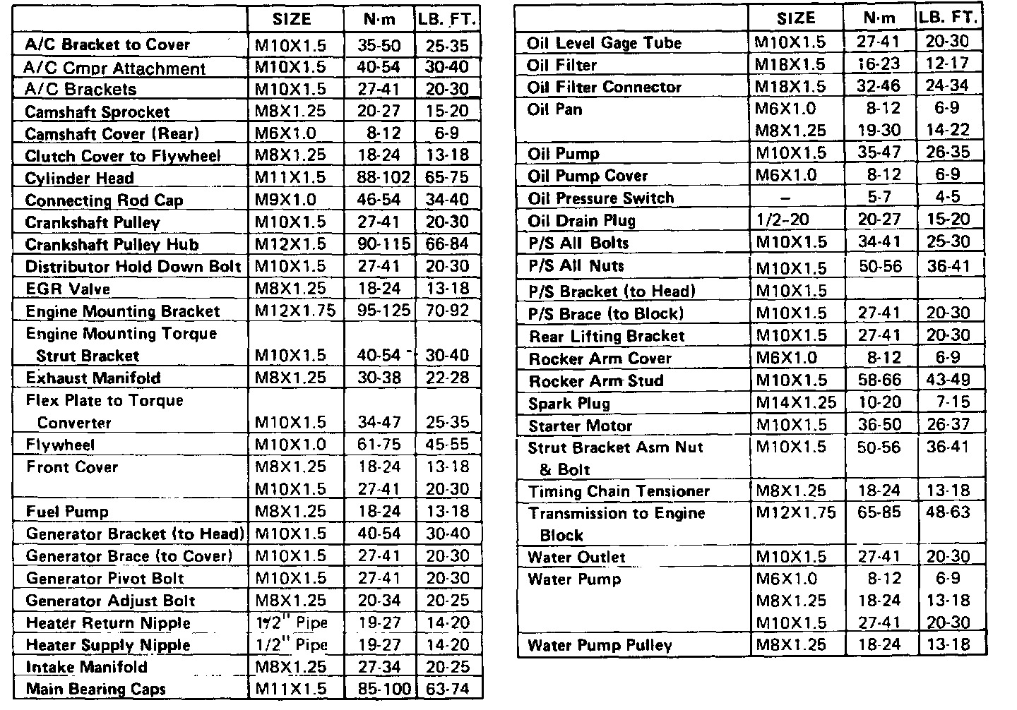 Torque Specifications: