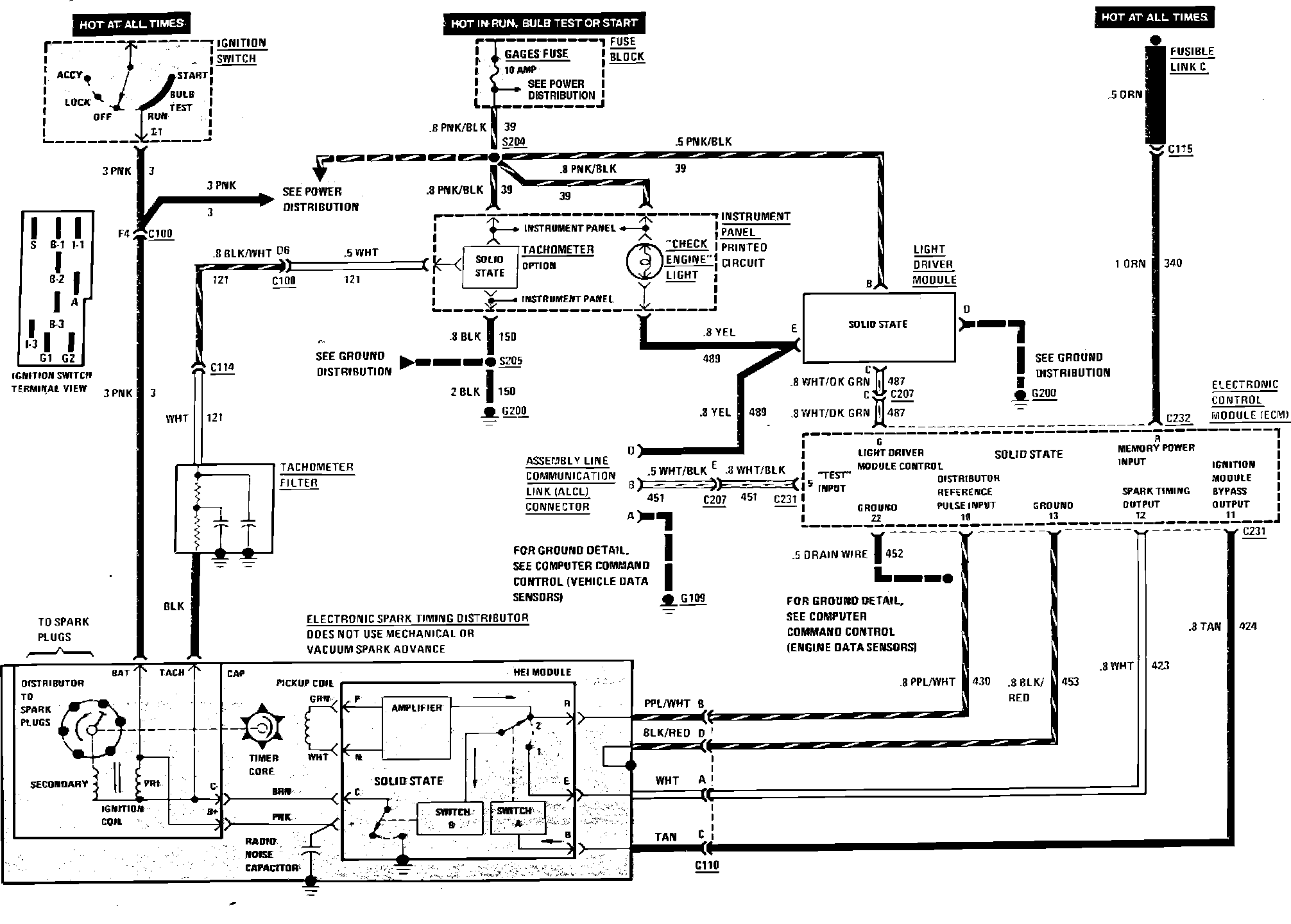 Computer Command Control (Check Engine Light, Ignition System & Tachometer):