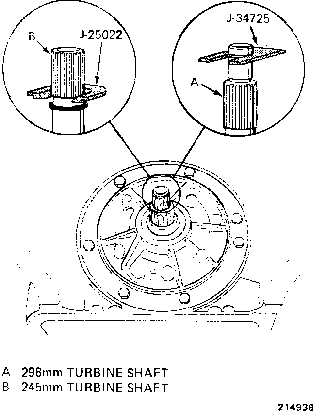 J-34725 is used for 298 mm style turbine shafts and J-25022 is used for 245 mm style turbine shafts..