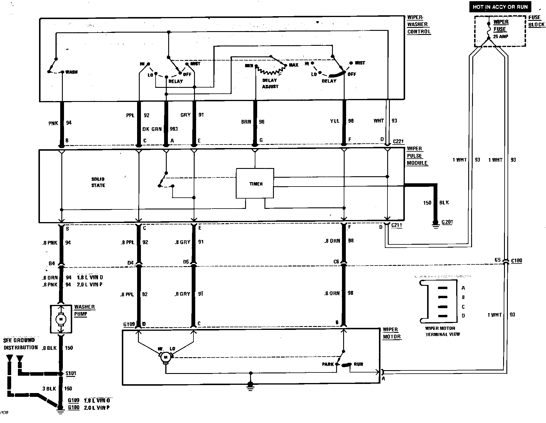 Windshield Wiper/Washer Wiring Circuit (With Pulse):
