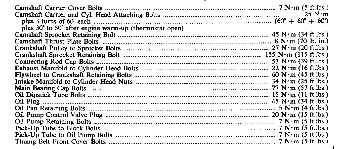 Continued Torque & Engine Specifications: