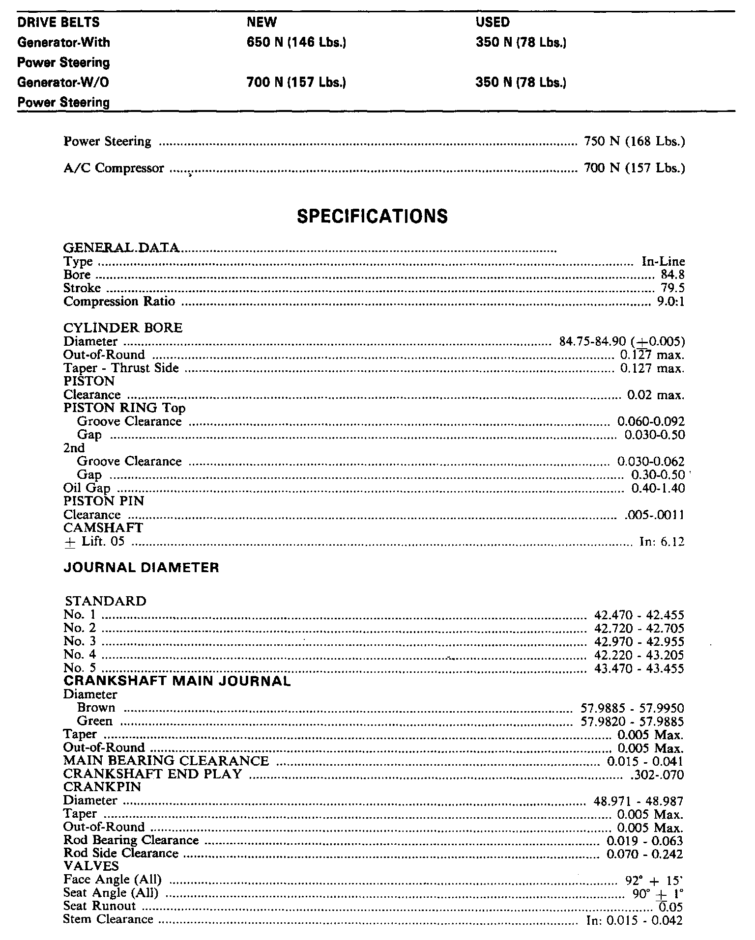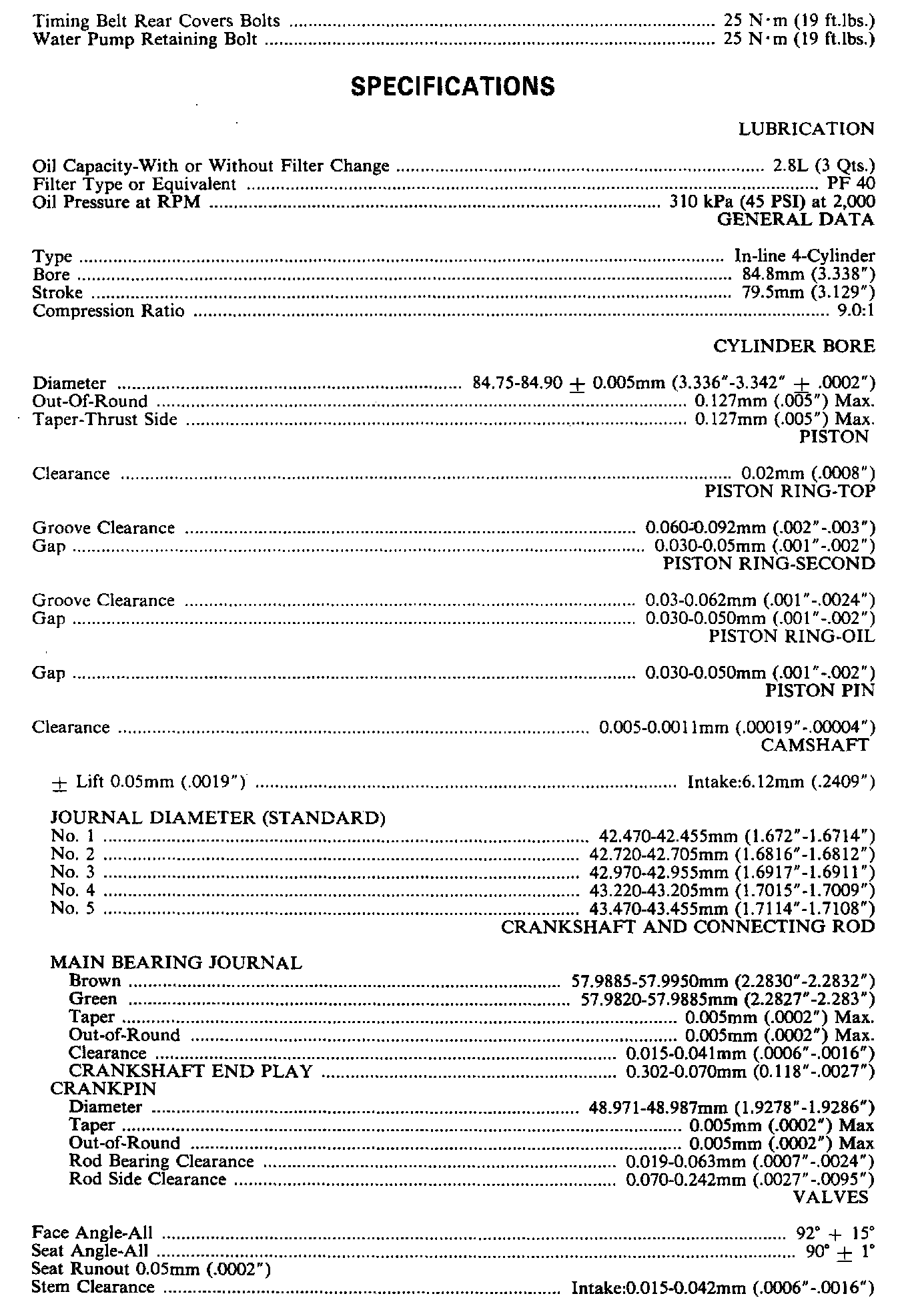 Continued Engine Specifications: