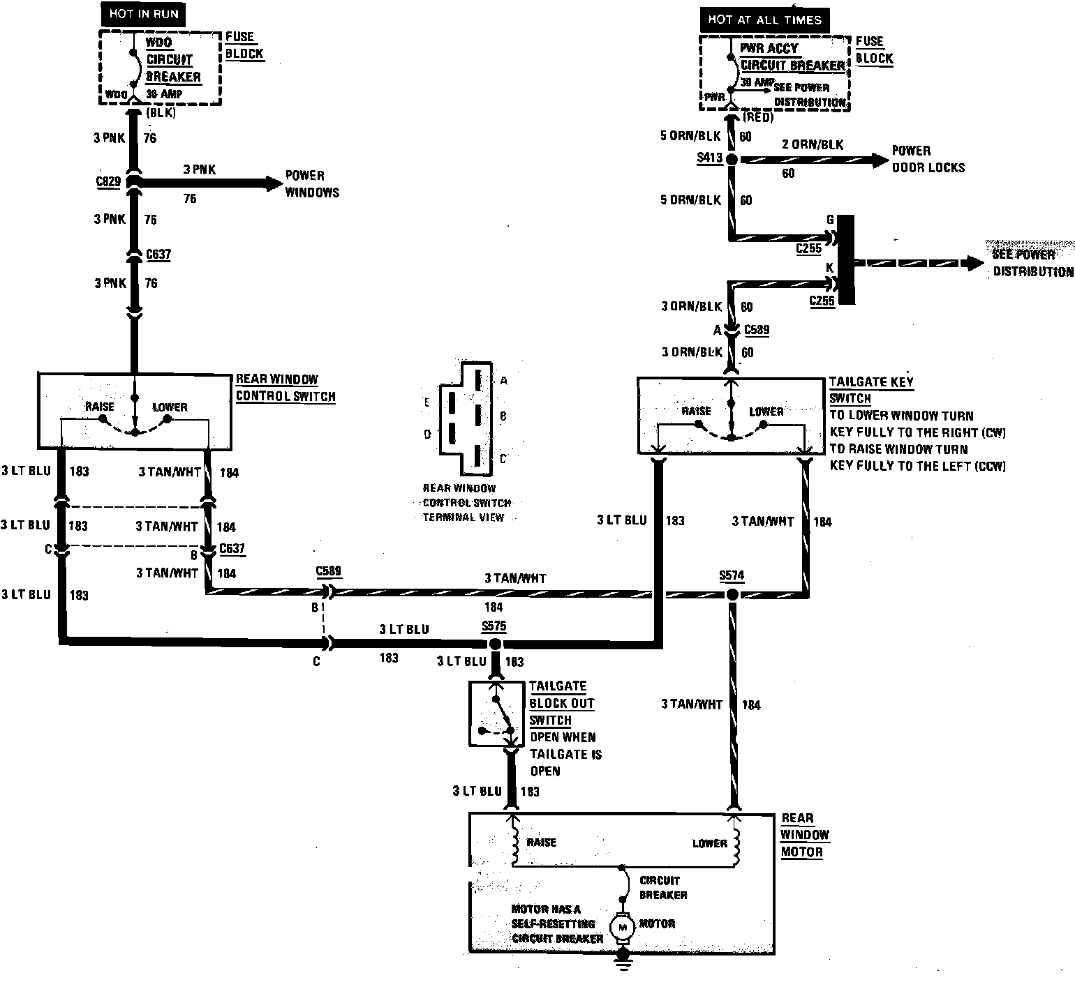 Tailgate Power Window Wiring Circuit: