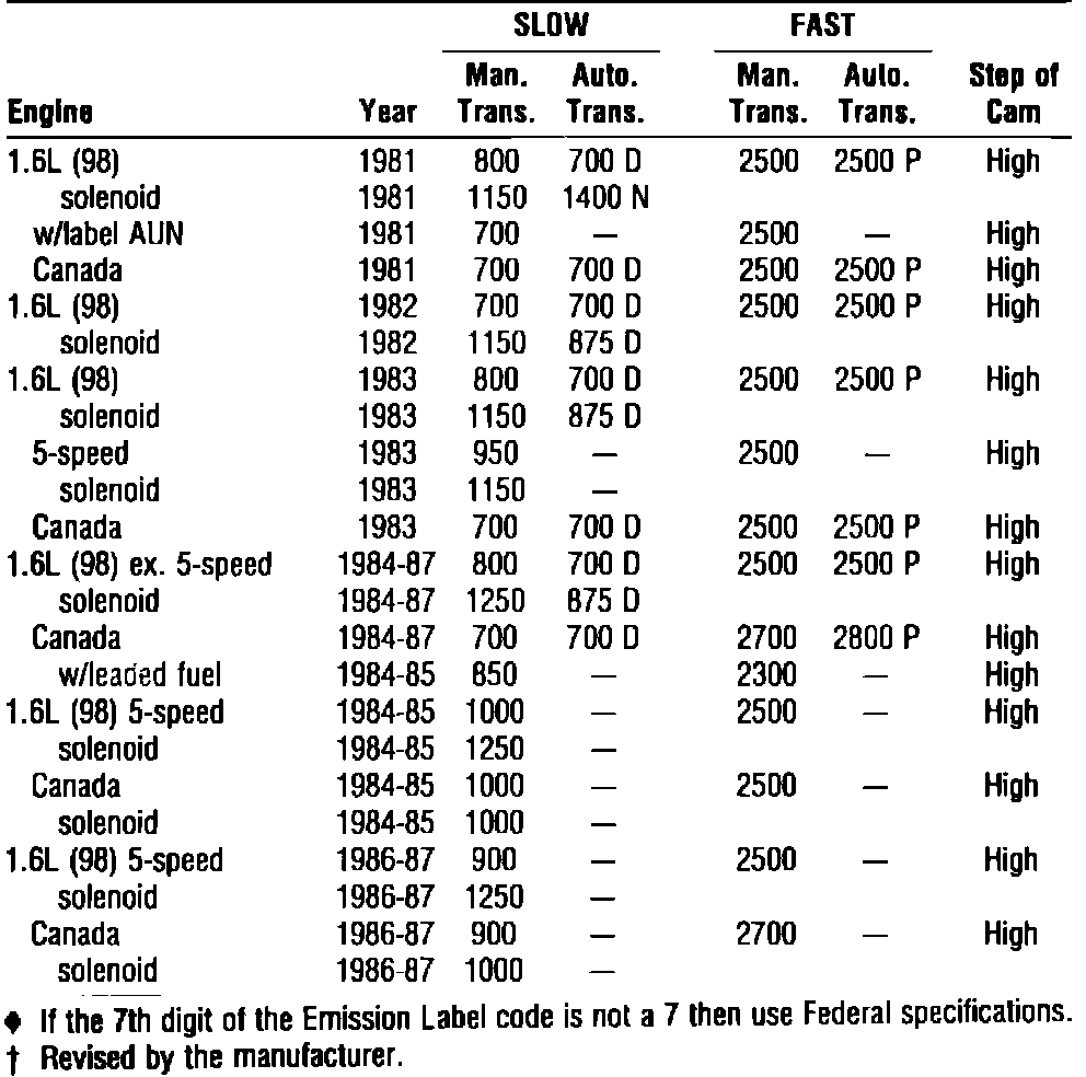 Idle Speed: Specifications