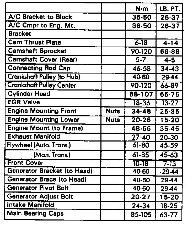 Torque Specifications:
