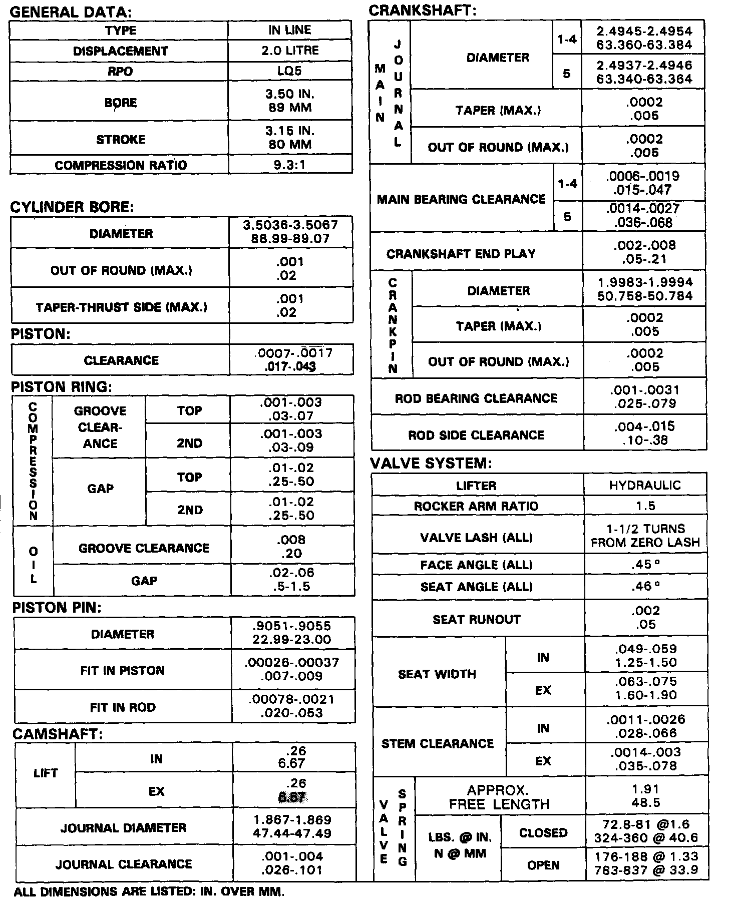 Engine Specifications: