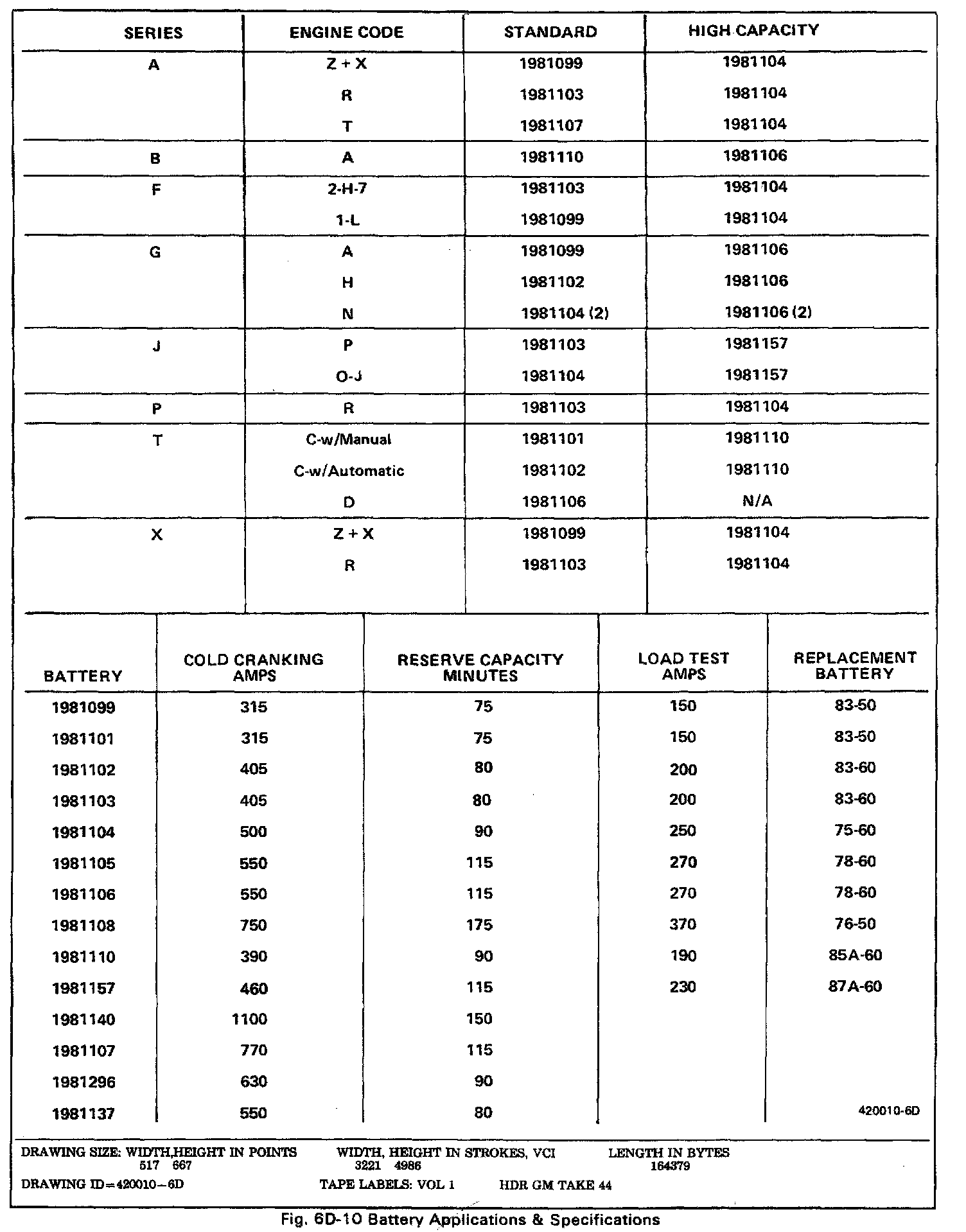 Starting and Charging: Specifications