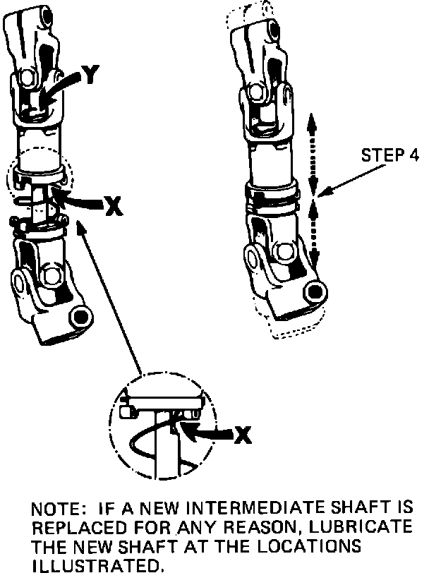 4. Fully compress intermediate shaft assembly two or three times to work grease into the assembly. REPEAT steps 3 and 4 three times.