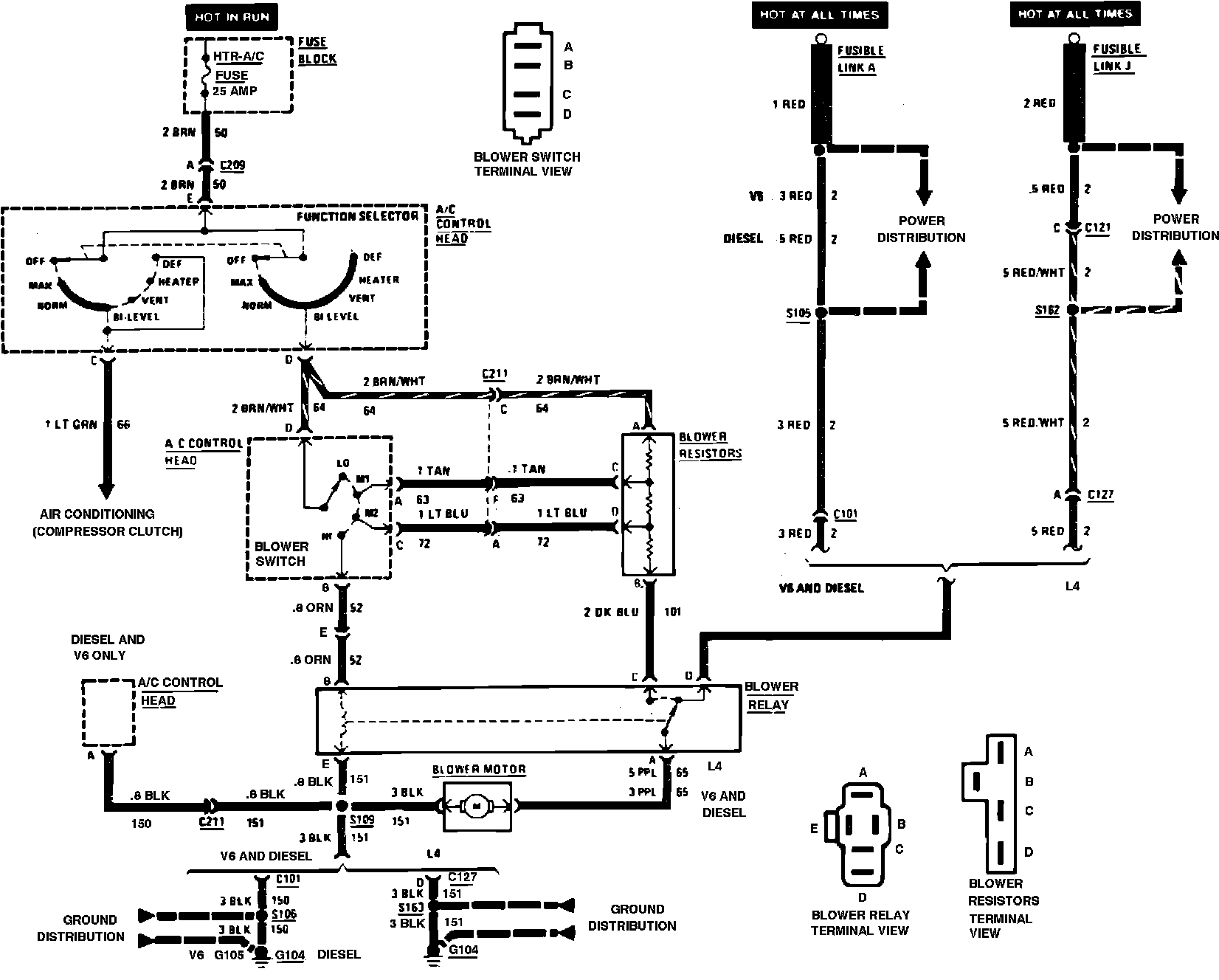 Air Conditioning Blower Motor Wiring Circuit 6000 & 6000LE: