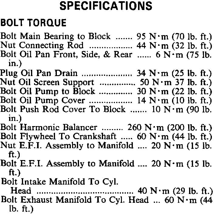 Torque Specifications: