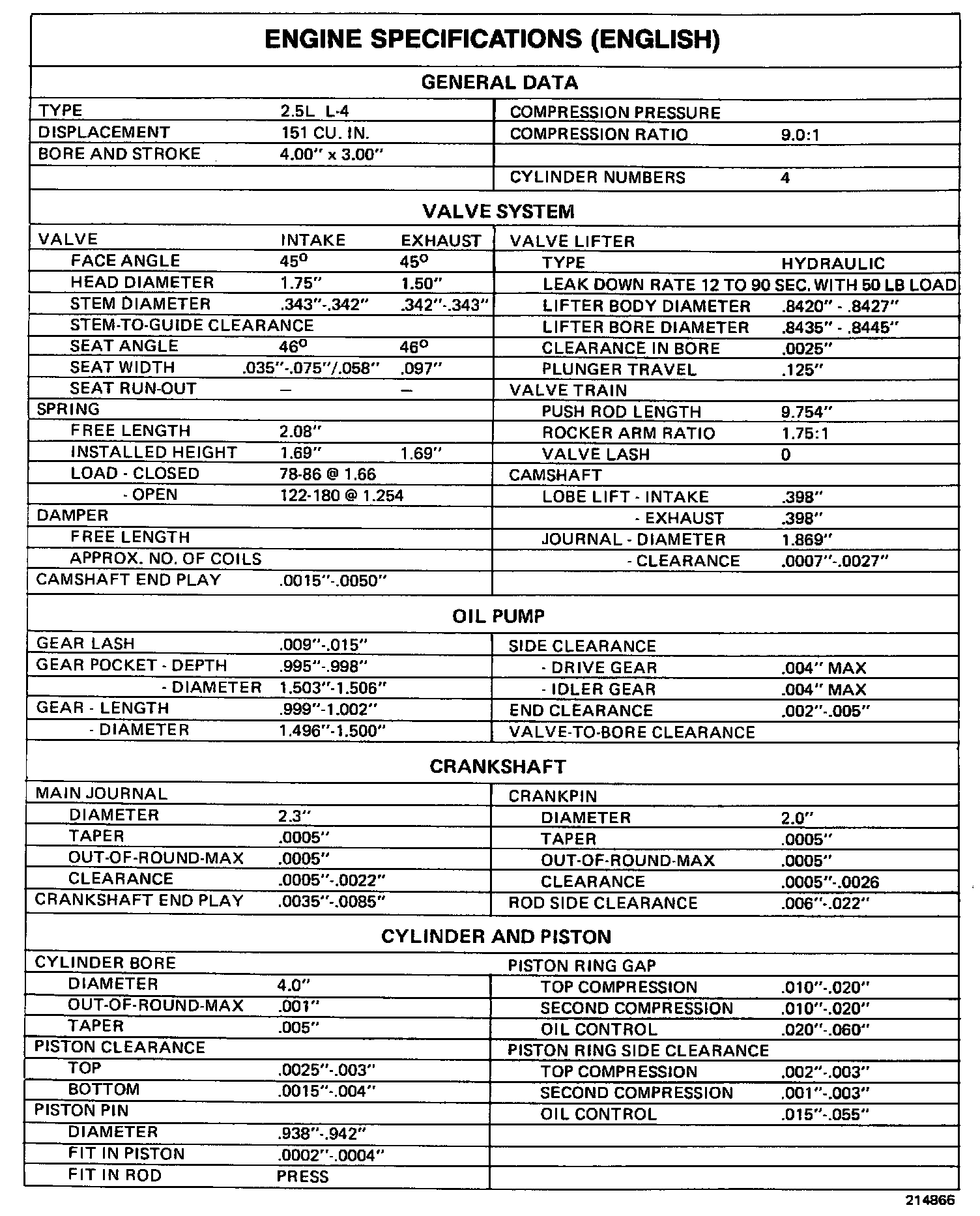 Engine Specifications: