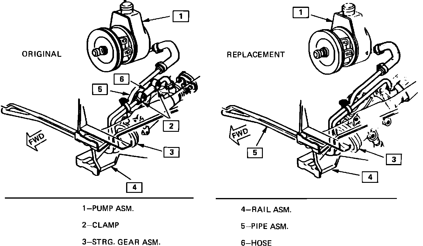 Some 1983-84 Firebirds equipped with the 5.0L V8 engine (L69) may exhibit a power steering oil cooler line leak where the short rubber hose is clamped to the pipe at the steering gear end. The leak normally occurs when starting a cold engine at temperatures below 0~F.