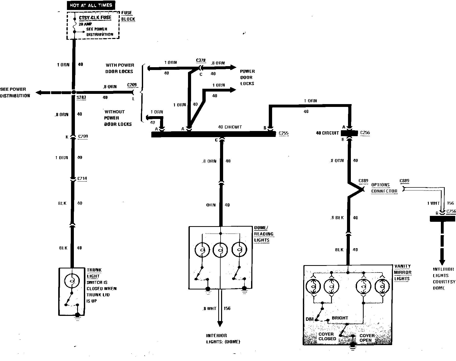 Interior Lighting (Reading/Trunk/Vanity) Wiring Circuit: