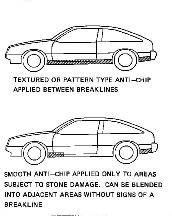 When repairing existing anti-chip or adding antichip material where there was none, the following guides will aid in achieving either a smooth or textured finish. In any case, manufacturer's label directions should be read prior to application.