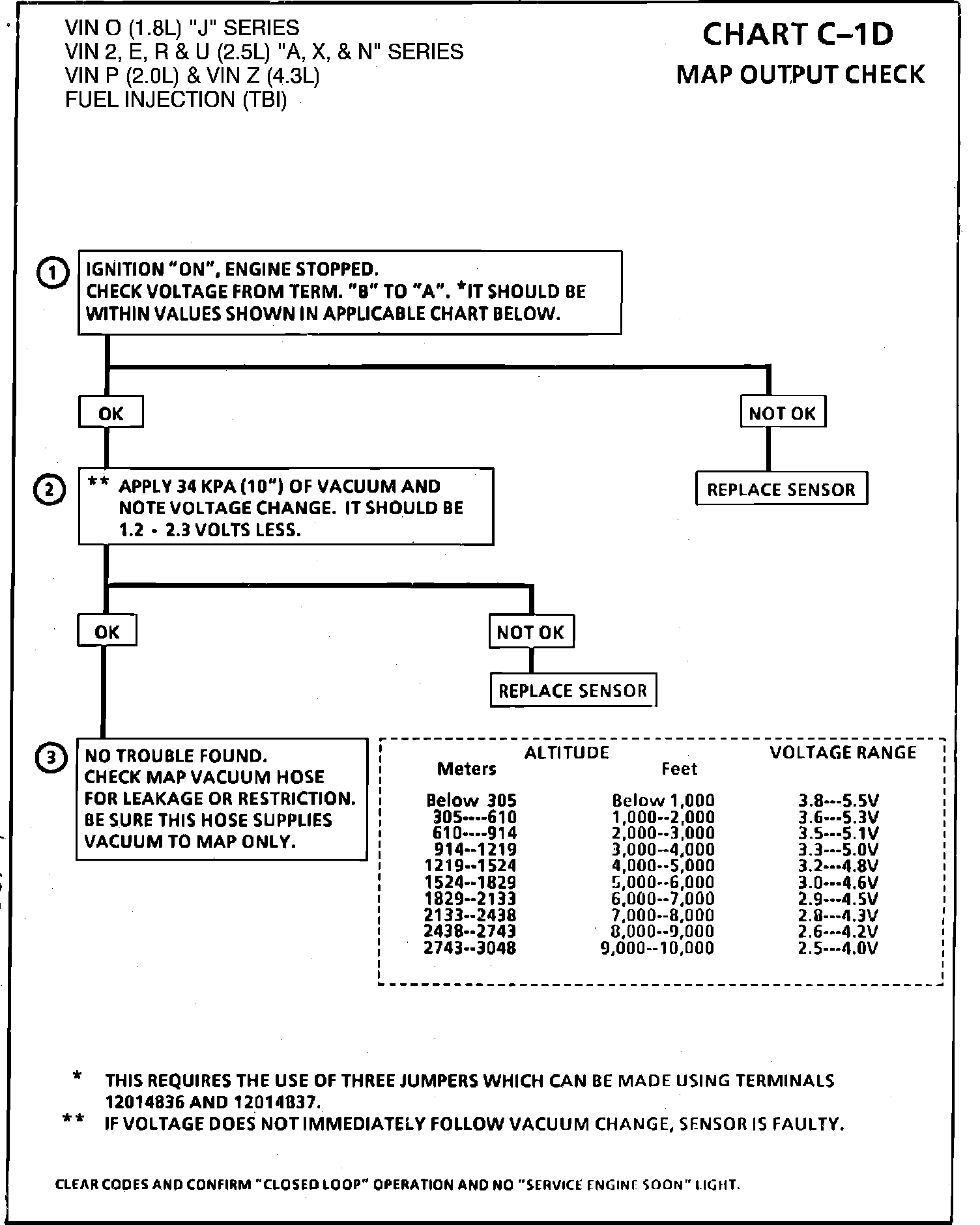 1. Checks MAP sensor output voltage to the ECM. This voltage, without engine running, represents a barometer reading to the ECM.