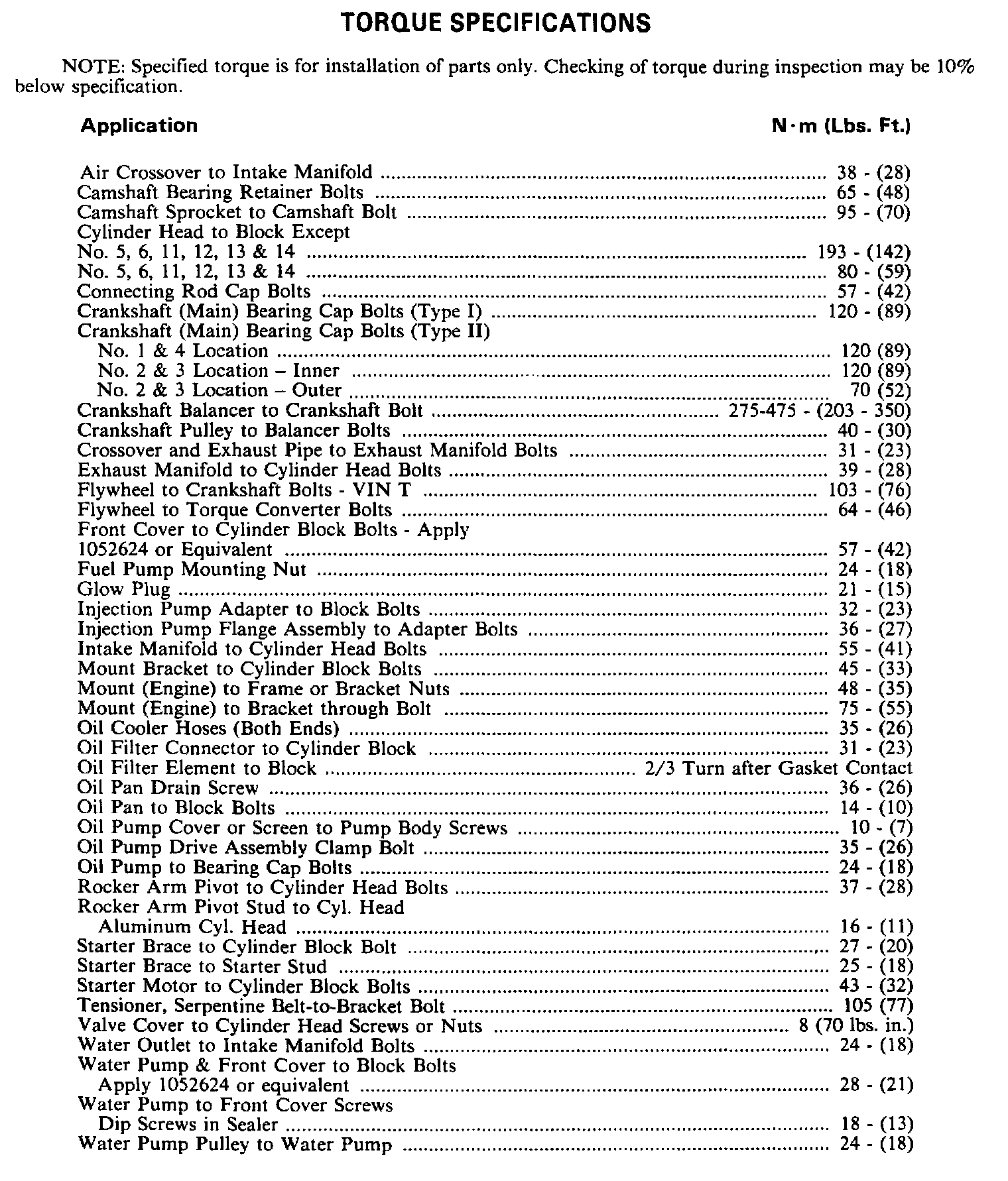 Torque Specifications: