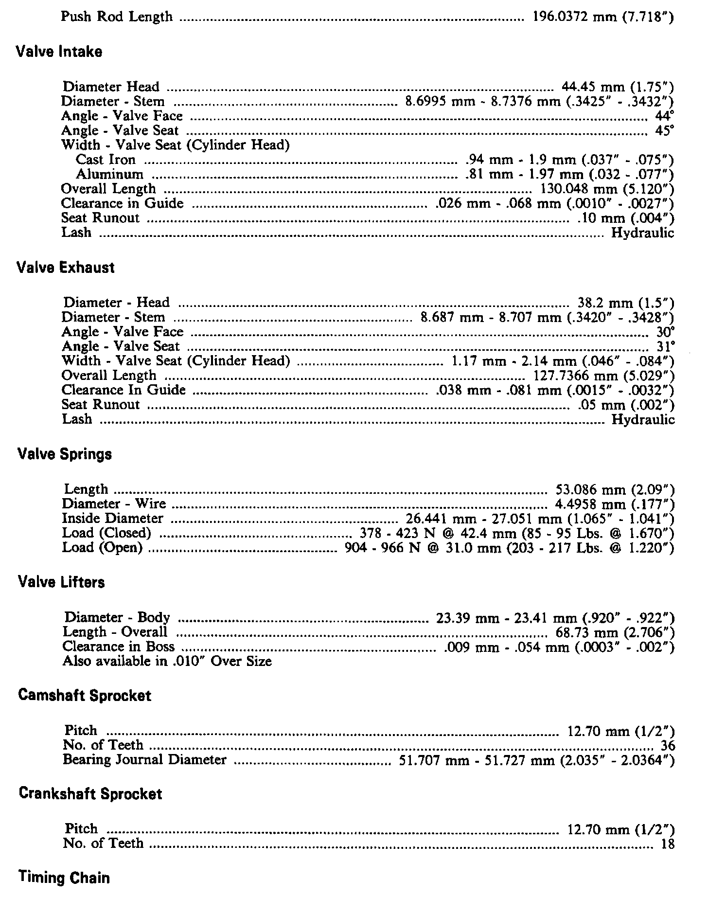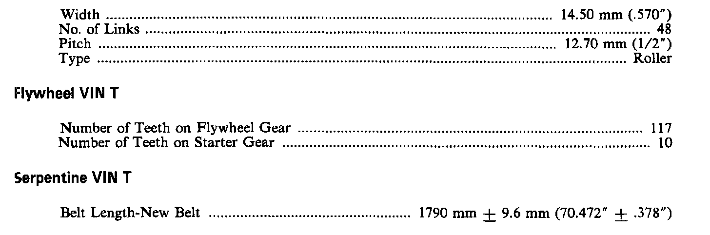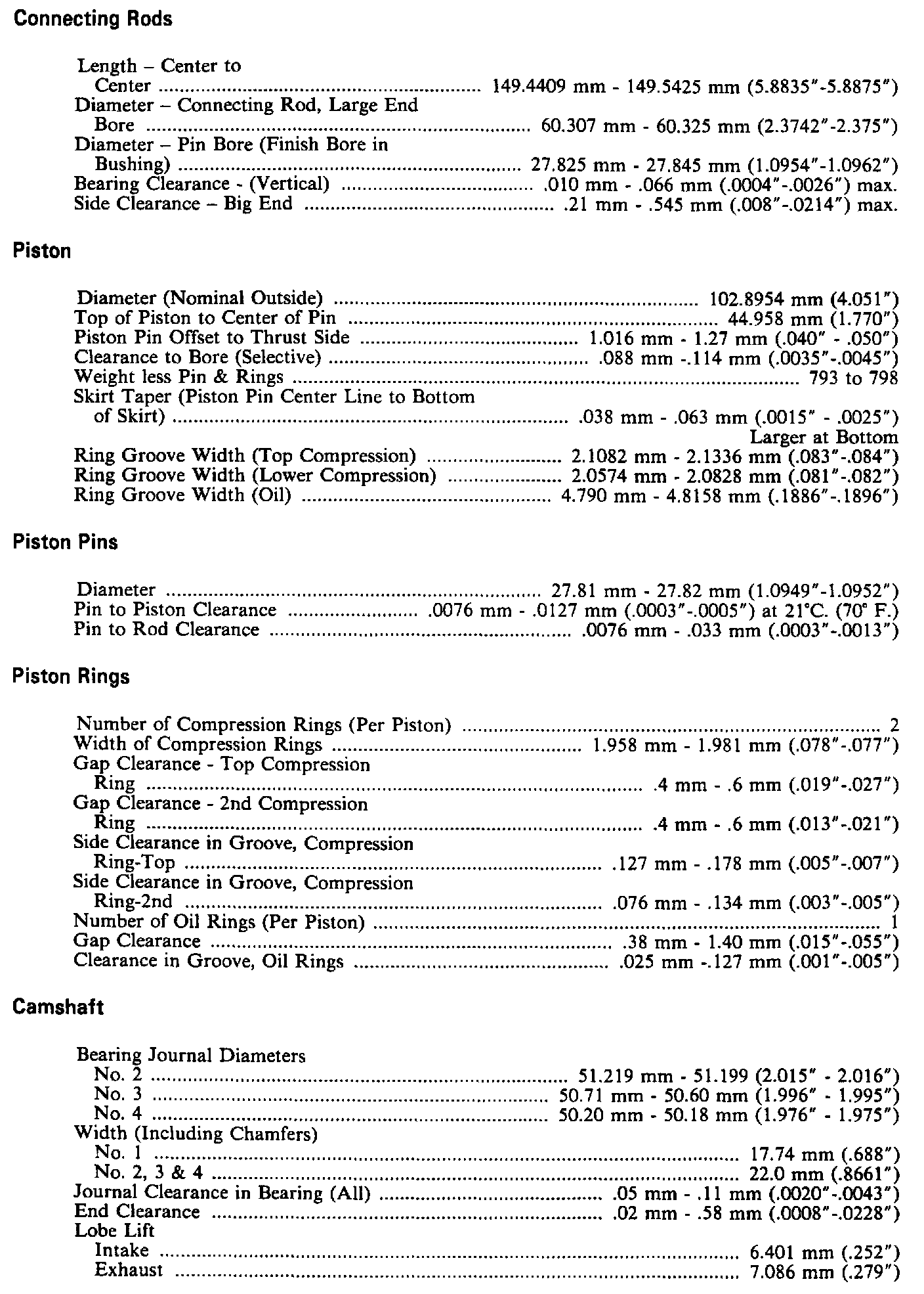 Continued Engine Specifications: