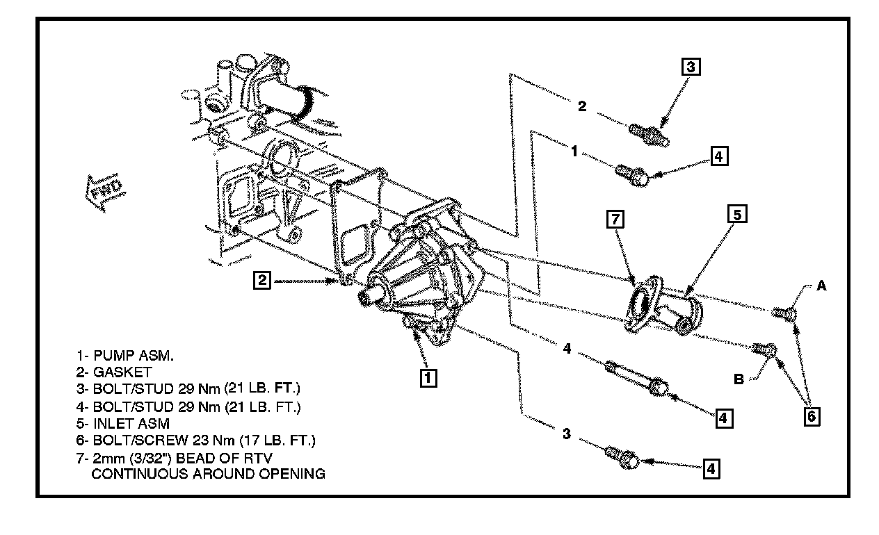1. A 3mm (1/8") bead of sealant on water pump sealing surface.