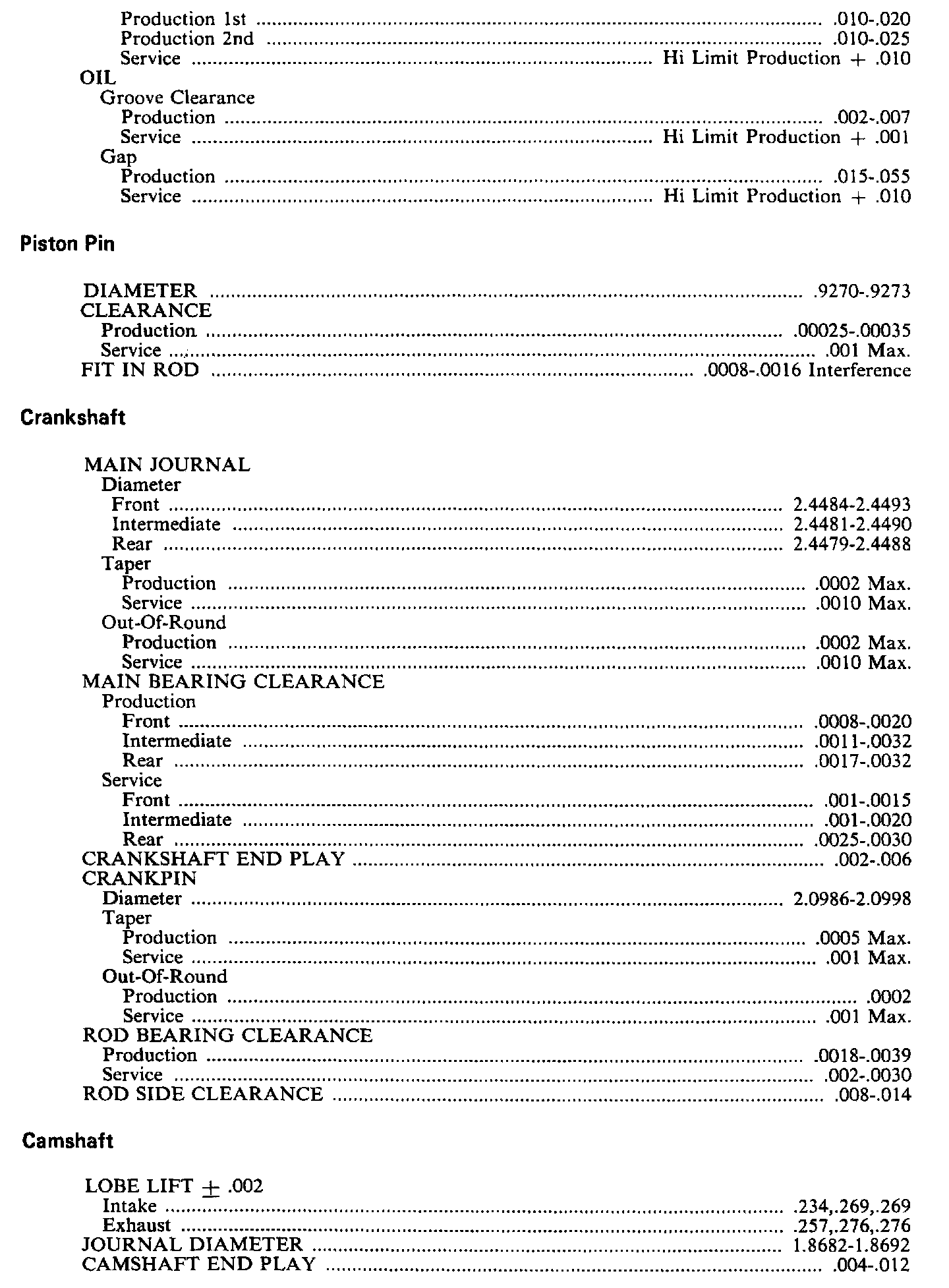 Continued Engine Specifications: