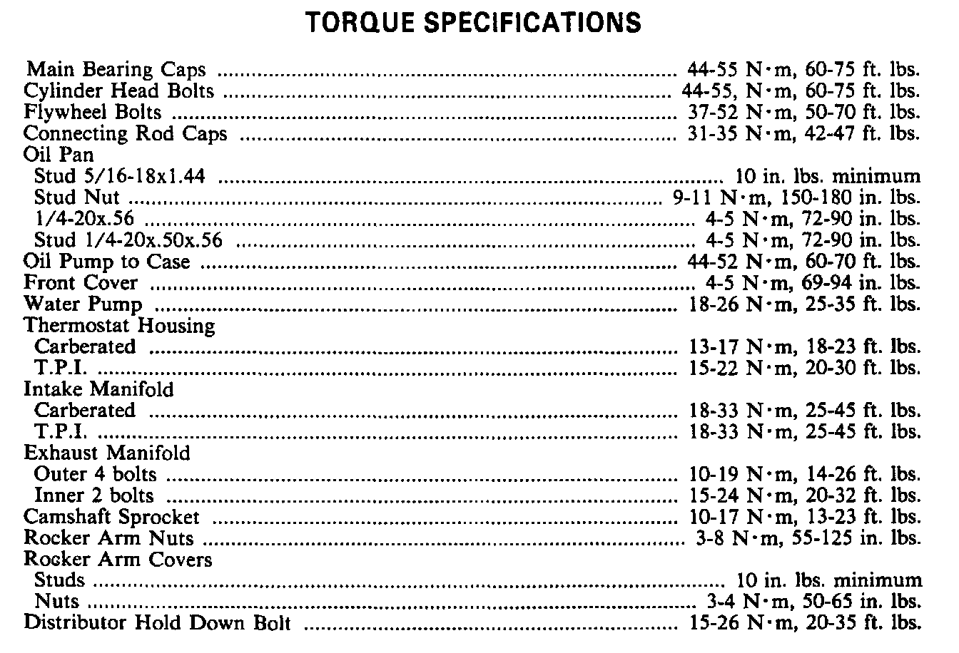 Torque Specifications: