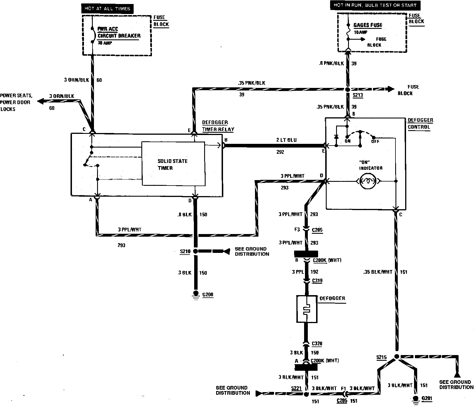 Rear Window Defogger Wiring Circuit: