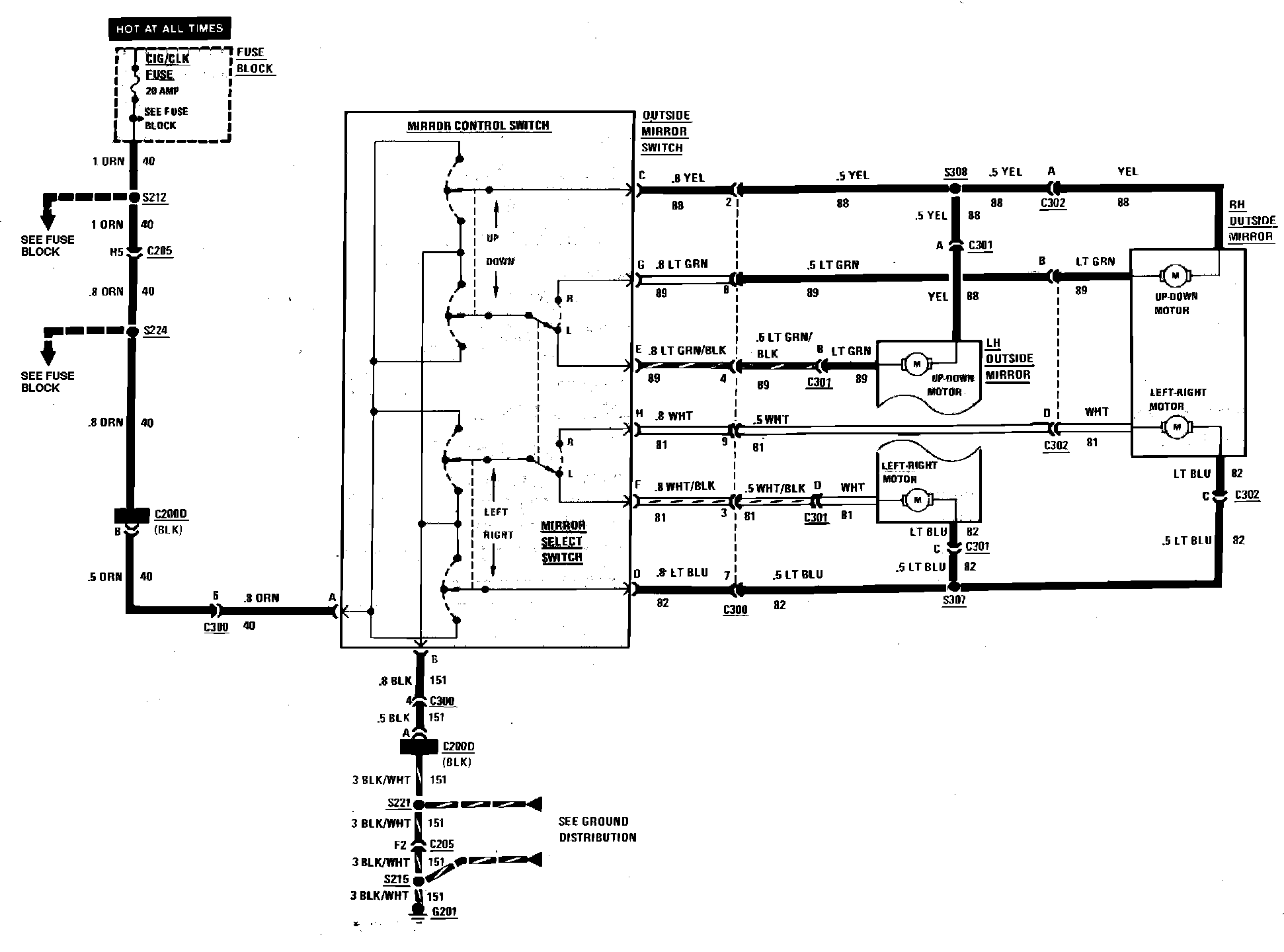 Power Remote Mirror Wiring Curcuit:
