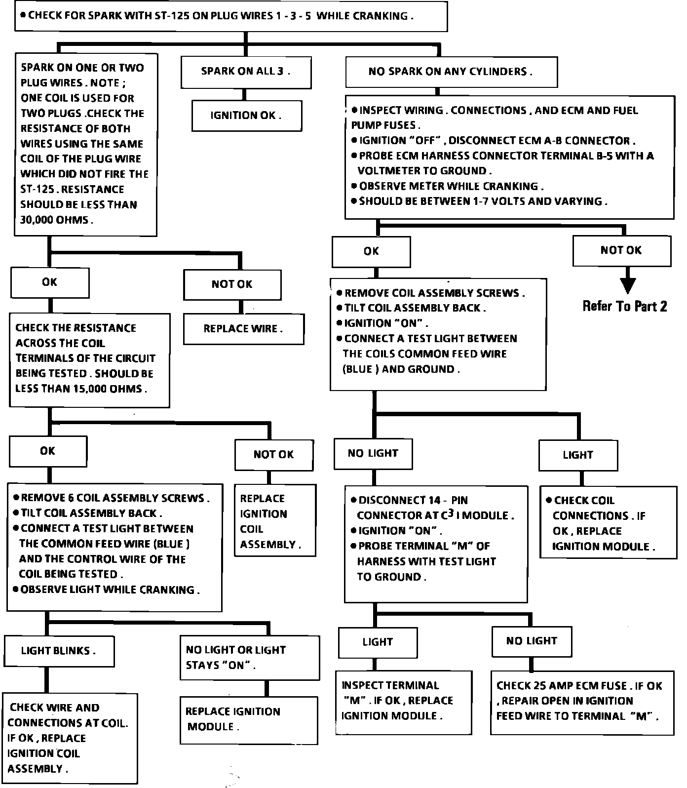 Fig. 16a C3I ignition system diagnosis chart (Part 1 of 2). 1985 V6-181/3.0L engine: