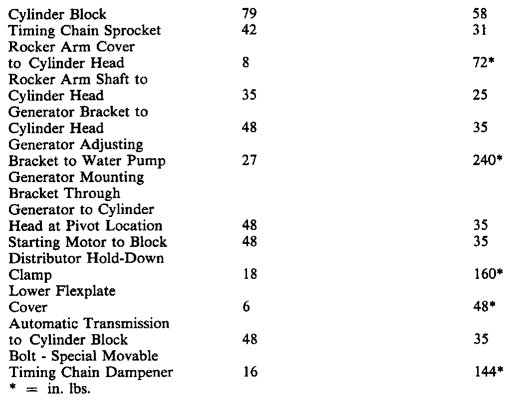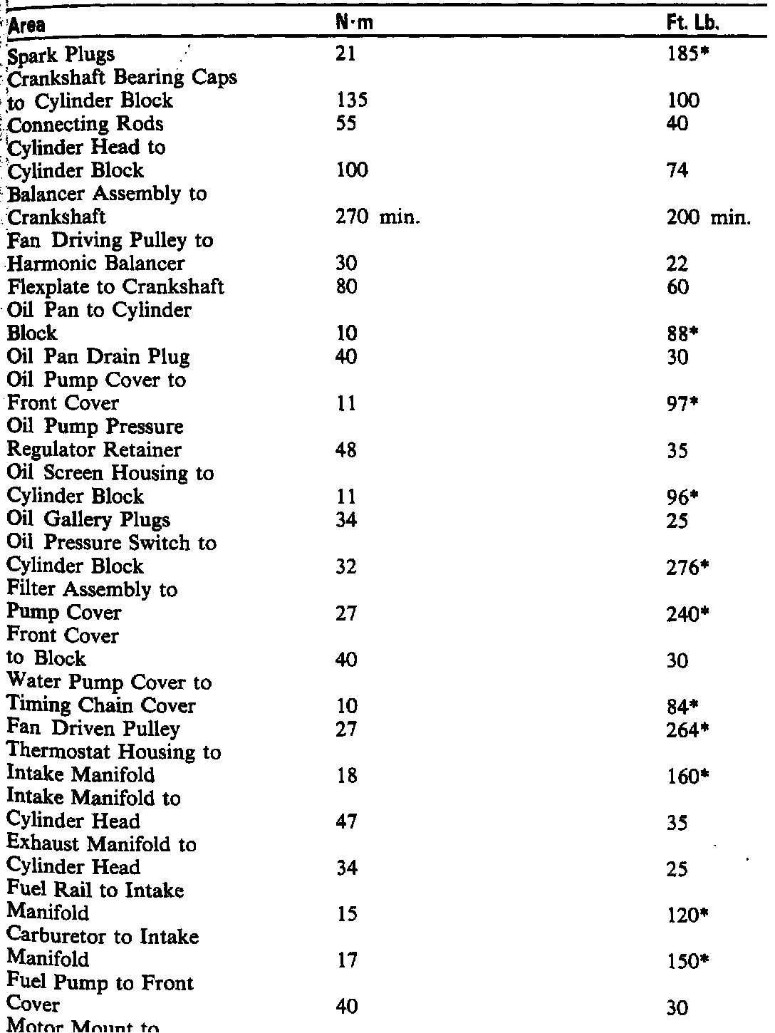 Continued Torque Specifications: