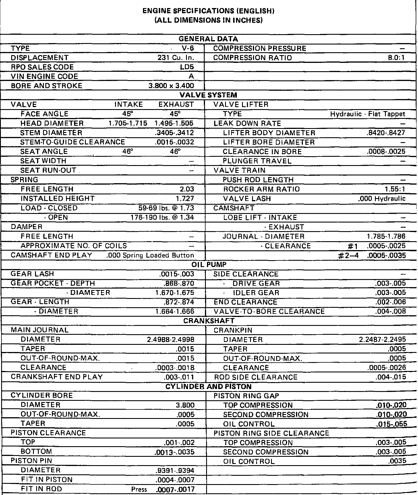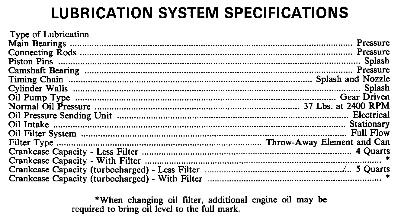Continued Engine Specifications: