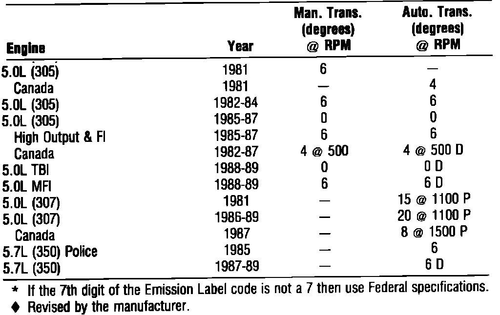 Ignition Timing: Specifications