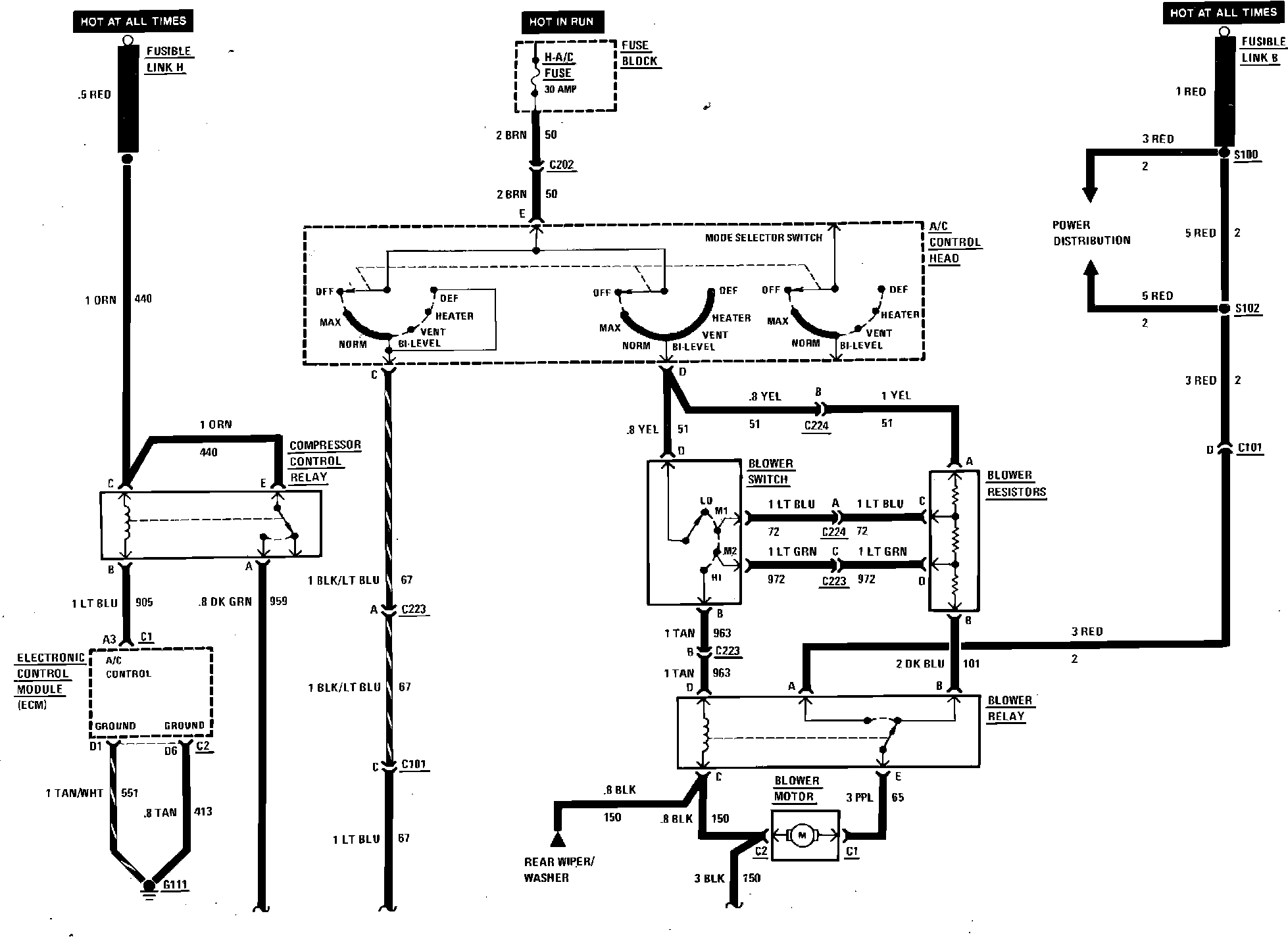 Air Conditioning Blower & Compressor Controls Wiring Circuit: