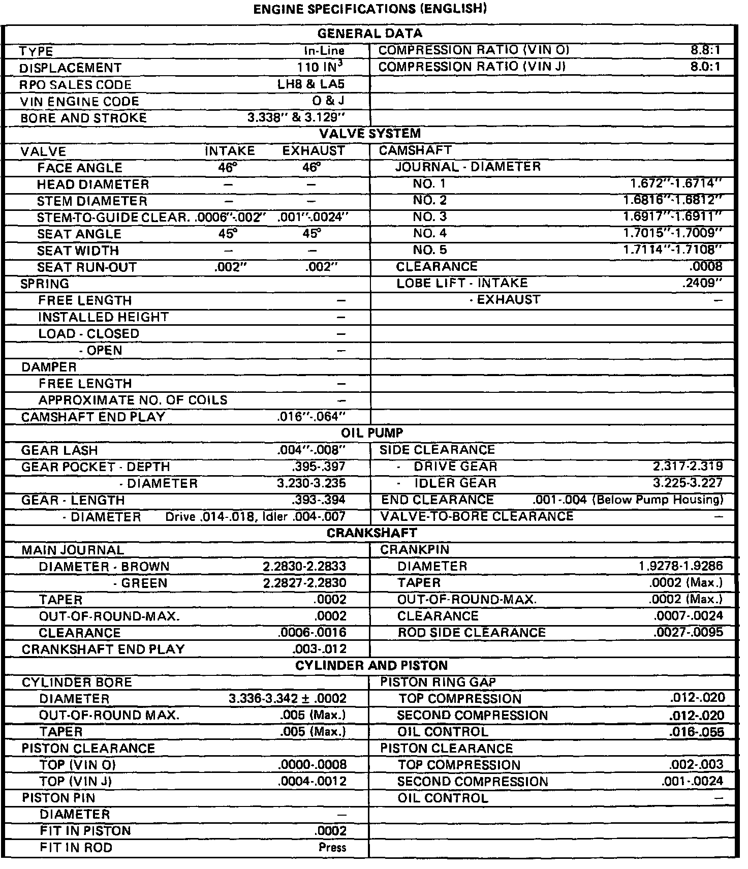 Engine Specifications: