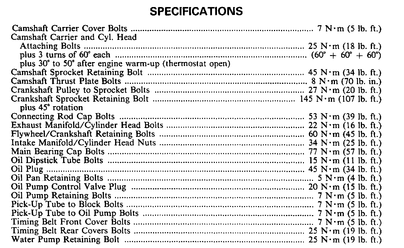 Torque Specifications: