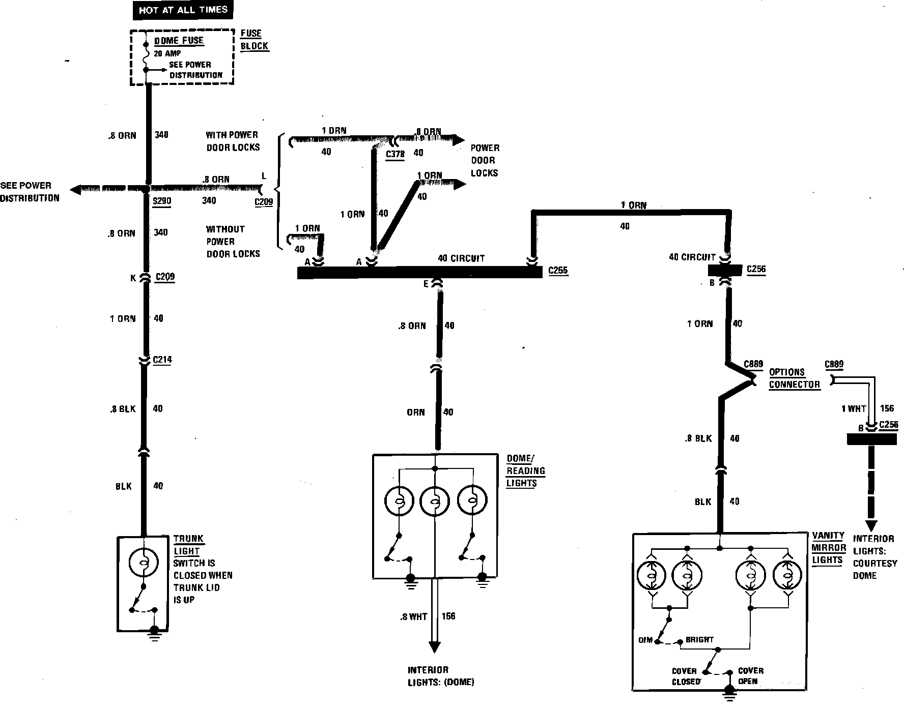 Interior Lights Wiring Circuit (Reading, Vanity & Trunk Lamps):