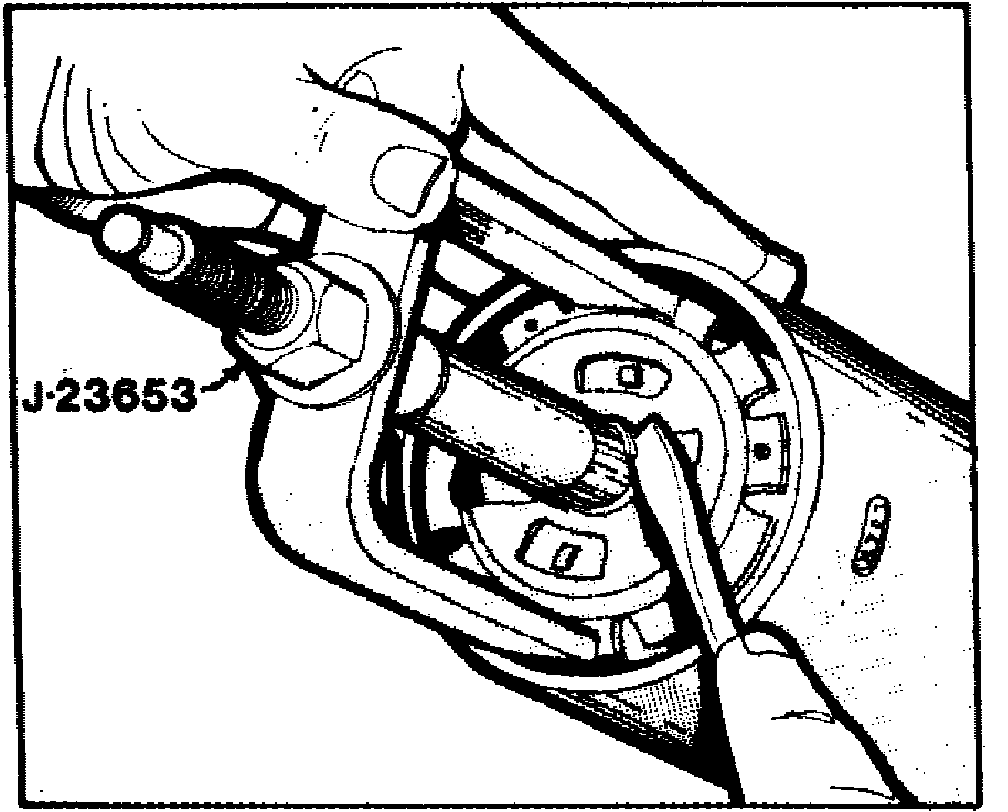 1. Disconnect battery ground cable, then remove steering wheel using puller. Do not hammer on end of shaft as hammering could collapse shaft or loosen plastic injections which maintain column rigidity.